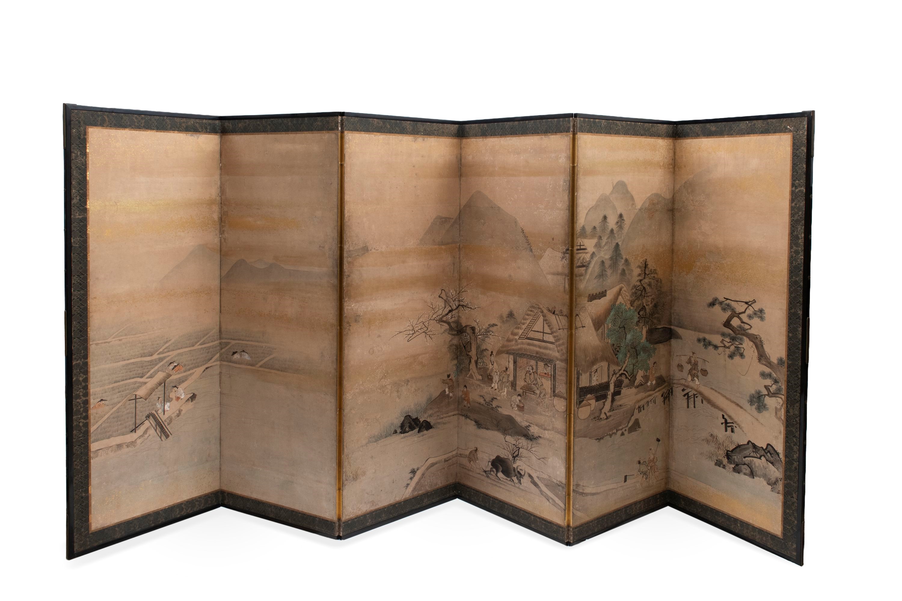 A PAINTED SIX-PANEL PAPER SCREEN, Japan, Meiji period (1868-1912)
