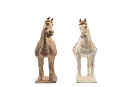 A PAIR OF CHINESE TERRACOTTA HORSES IN TANG STYLE