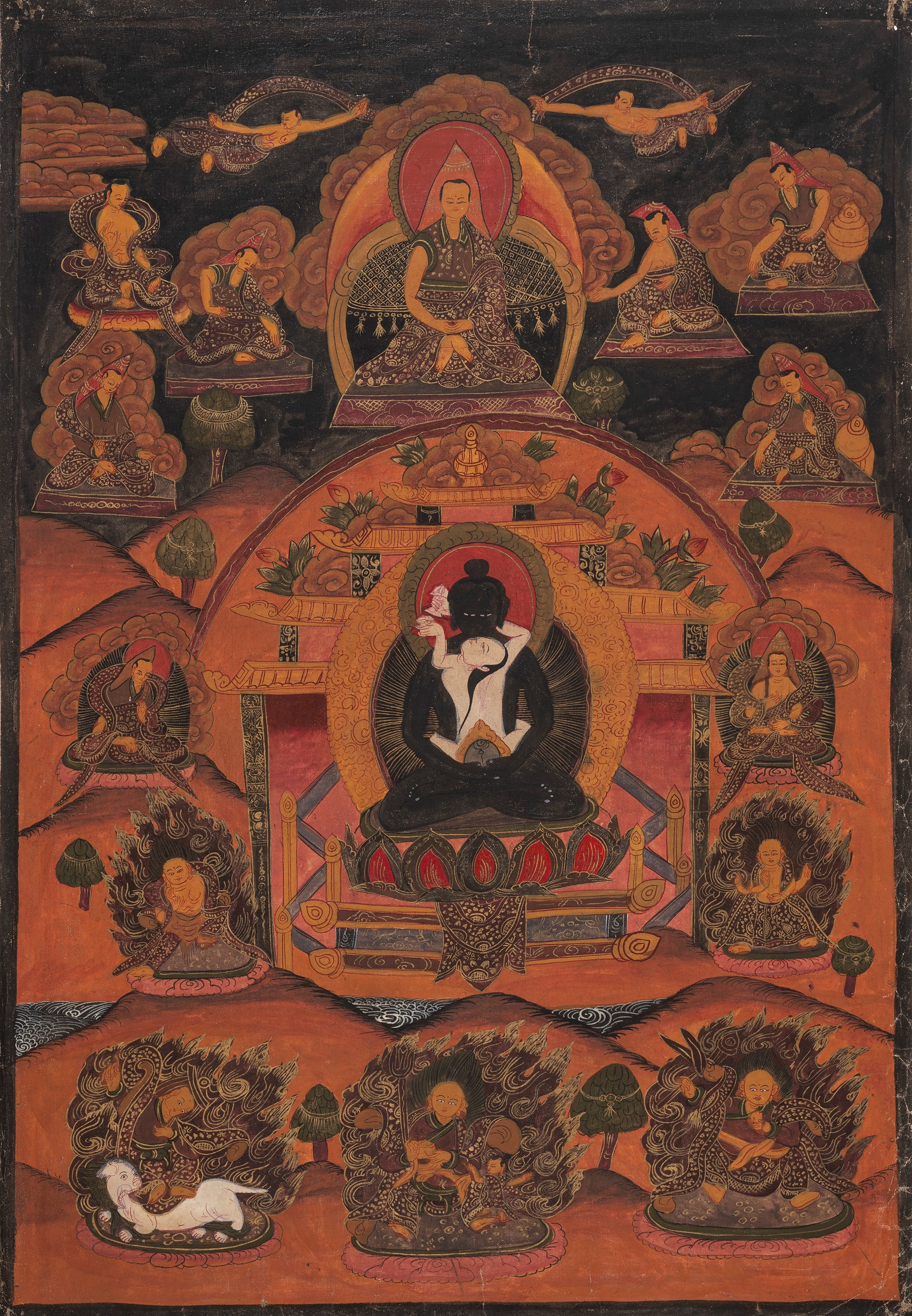A THANGKA PAINTED ON SILK, Tibet, 19/ 20th century