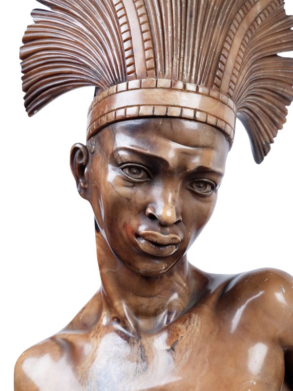 ALABASTER SCULPTURE DEPICTING A MOORISH WARRIOR, 19th century