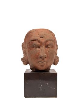 AN ANTIQUE INDIAN TERRACOTTA HEAD