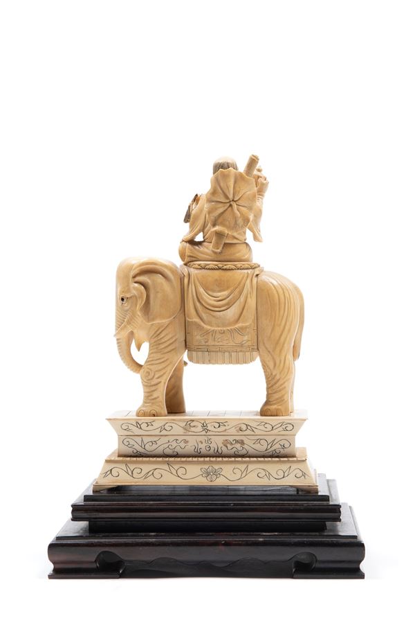 ☼AN IVORY SCULPTURE DEPICTING A SAGE ON AN ELEPHANT, China, 19th / 20th century