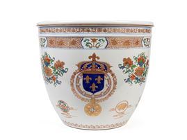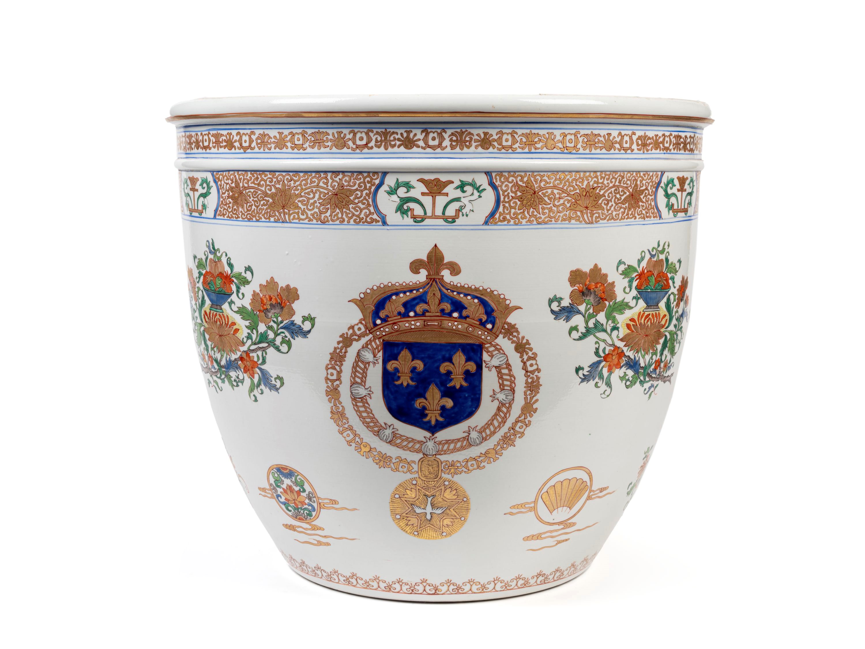 ARMORIAL "ROYAL ARMS OF FRANCE" JARDINIÈRE IN POLYCHROME PORCELAIN, Samson Manufacture, 19th century