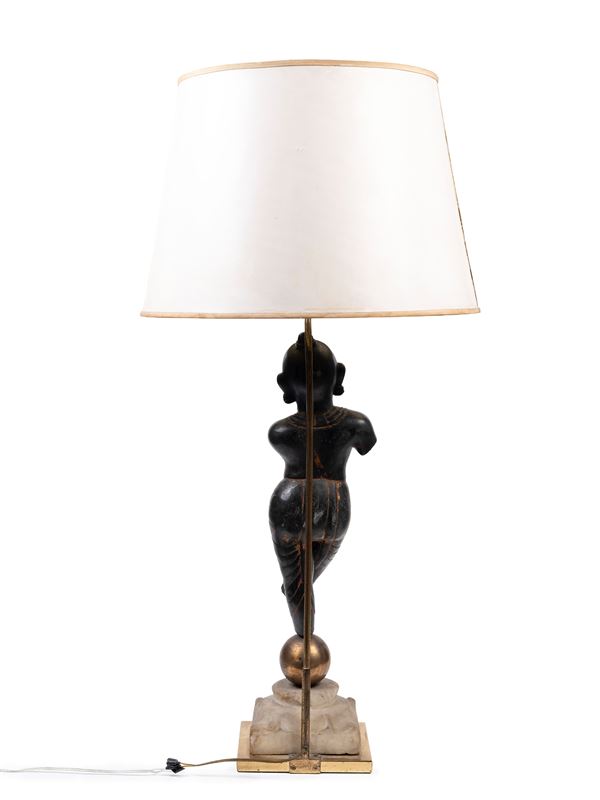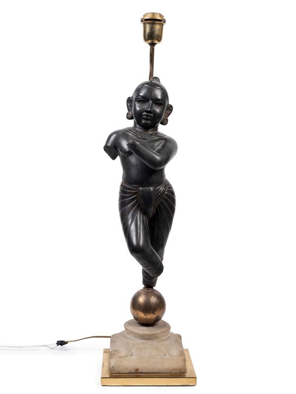 BLACK STONE SCULPTURE DEPICTING A MALE FIGURE (PROBABLY KRISHNA), India, 19th century