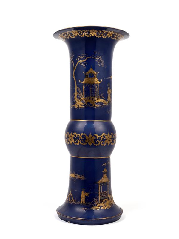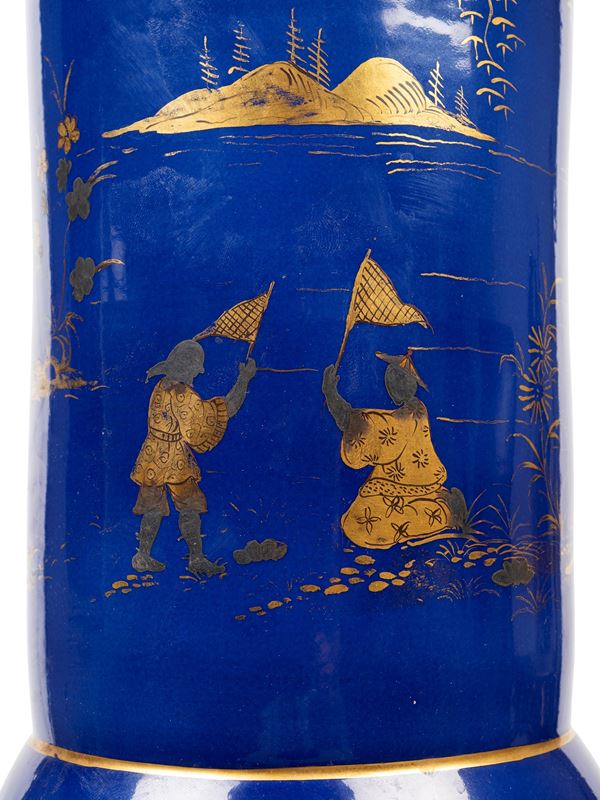 BLUE AND GOLD PORCELAIN VASE IN CHINOISERIE STYLE, 19th century