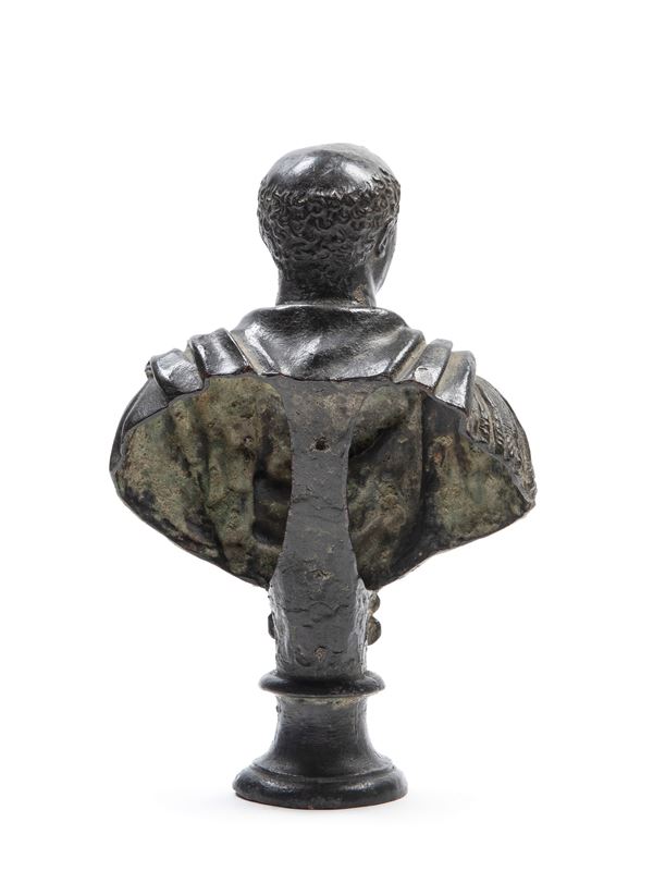 BRONZE BUST WITH DARK PATINA DEPICTING EMPEROR VESPASIAN, 17th century