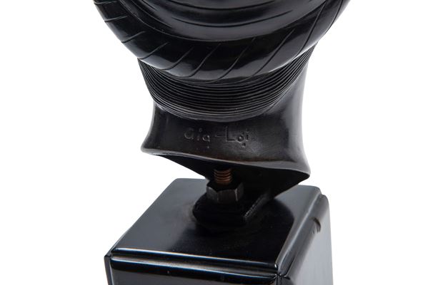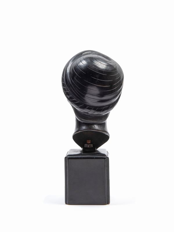 On a black ebonized wood base; signed on the back: Gia-Loi.