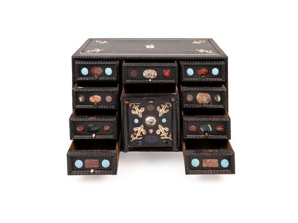 CABINET FOR COINS IN EBONIZED WOOD AND HARDSTONES, 18th century (with later additions)