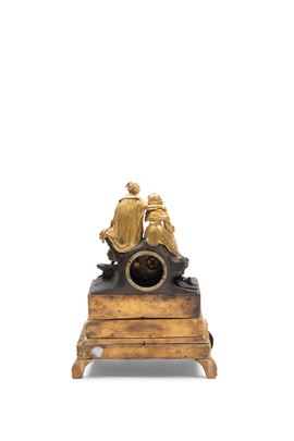 CHARLES X MANTEL CLOCK IN GILT AND DARK-PATINATED BRONZE, France, 19th century