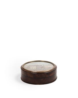 Decorated on the lid with a painted miniature depicting a landscape scene.
