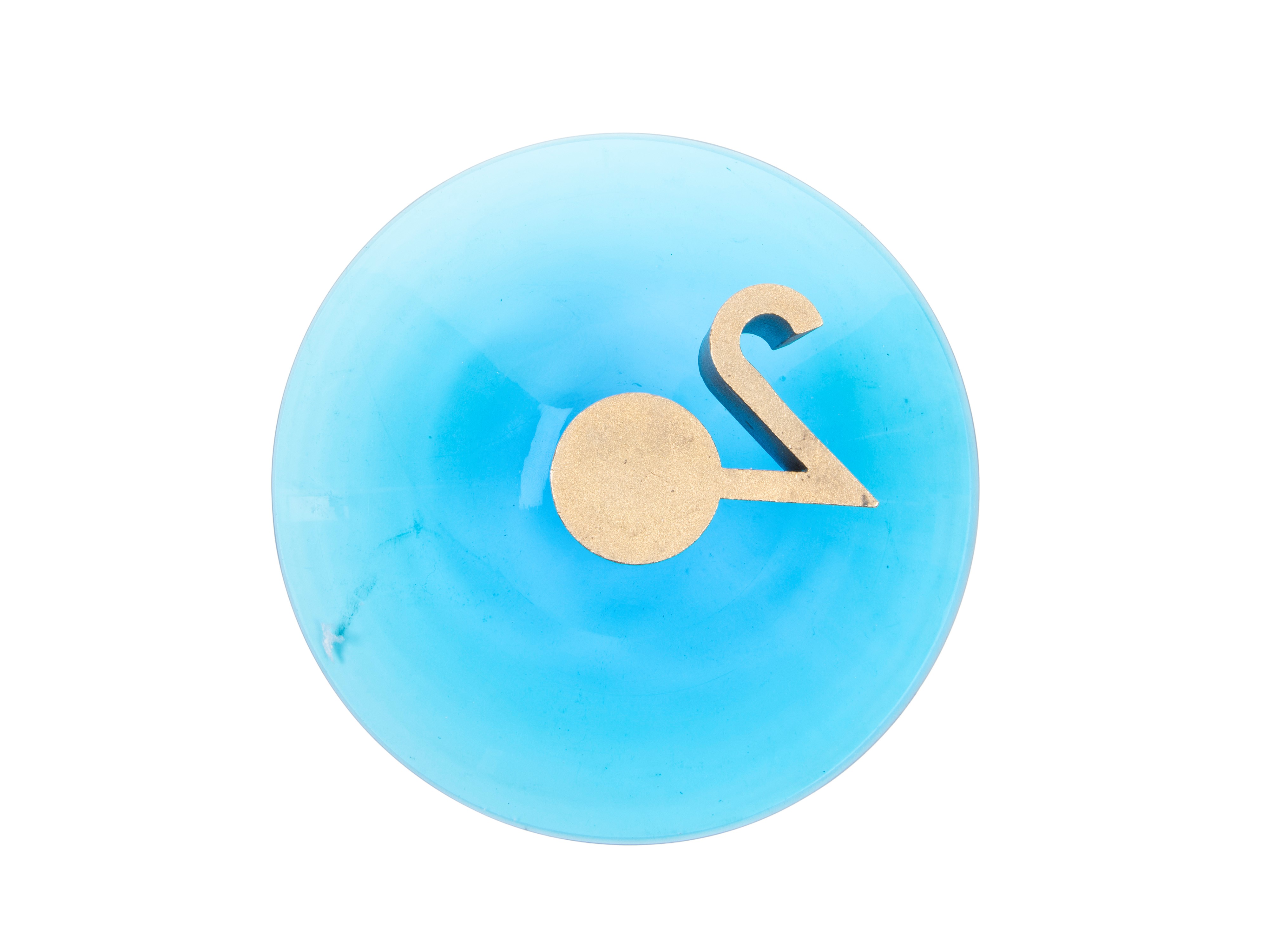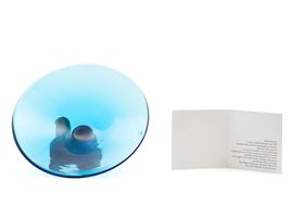 Blue glass on a base with number "20" in brass. Multiple by Davide Palterer, producted by Cleto Munari from Fideuram. Presented in the original box.