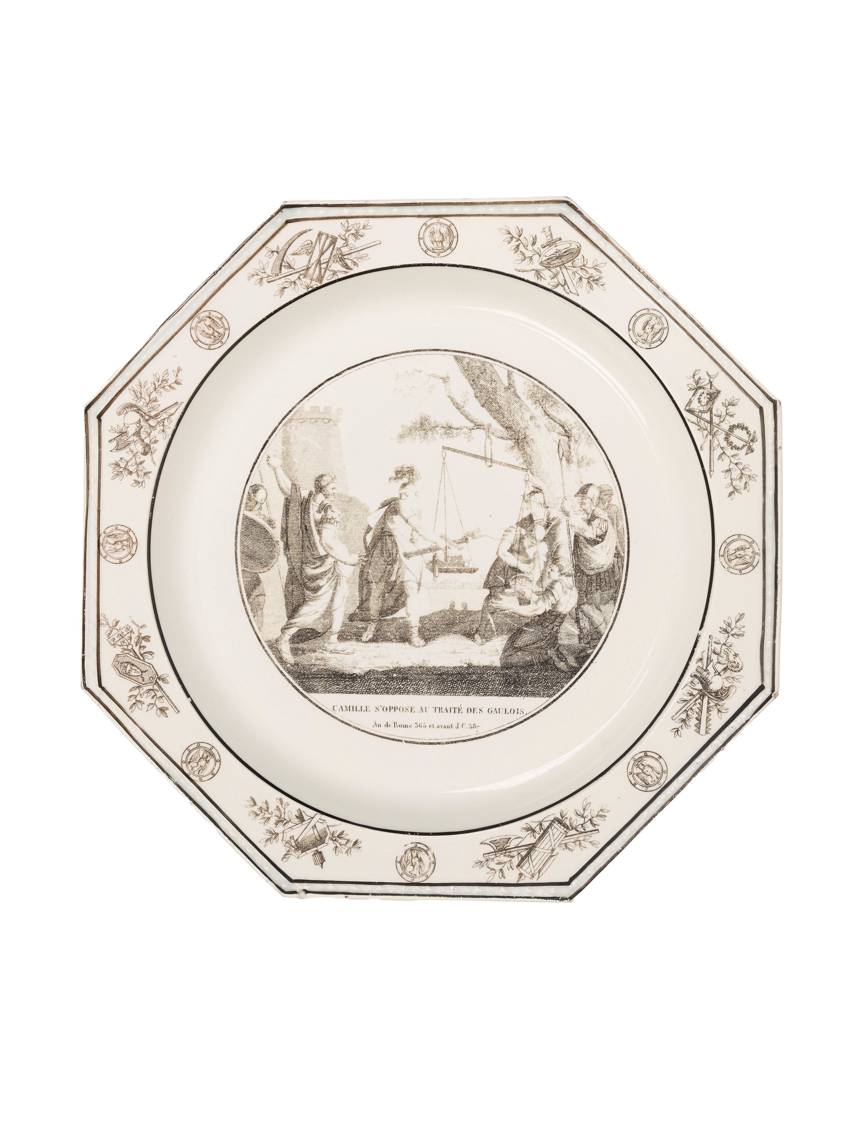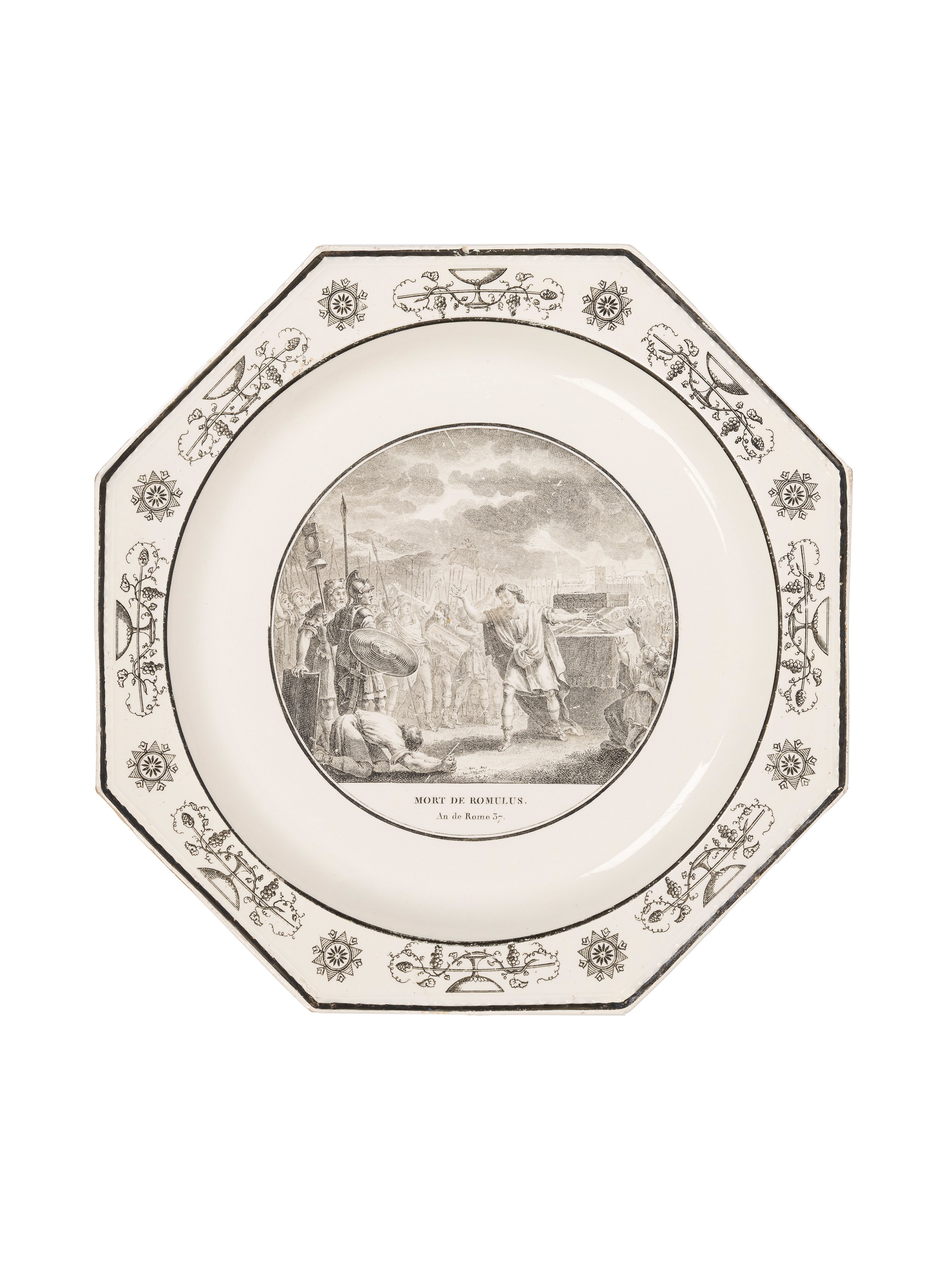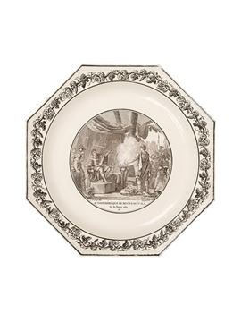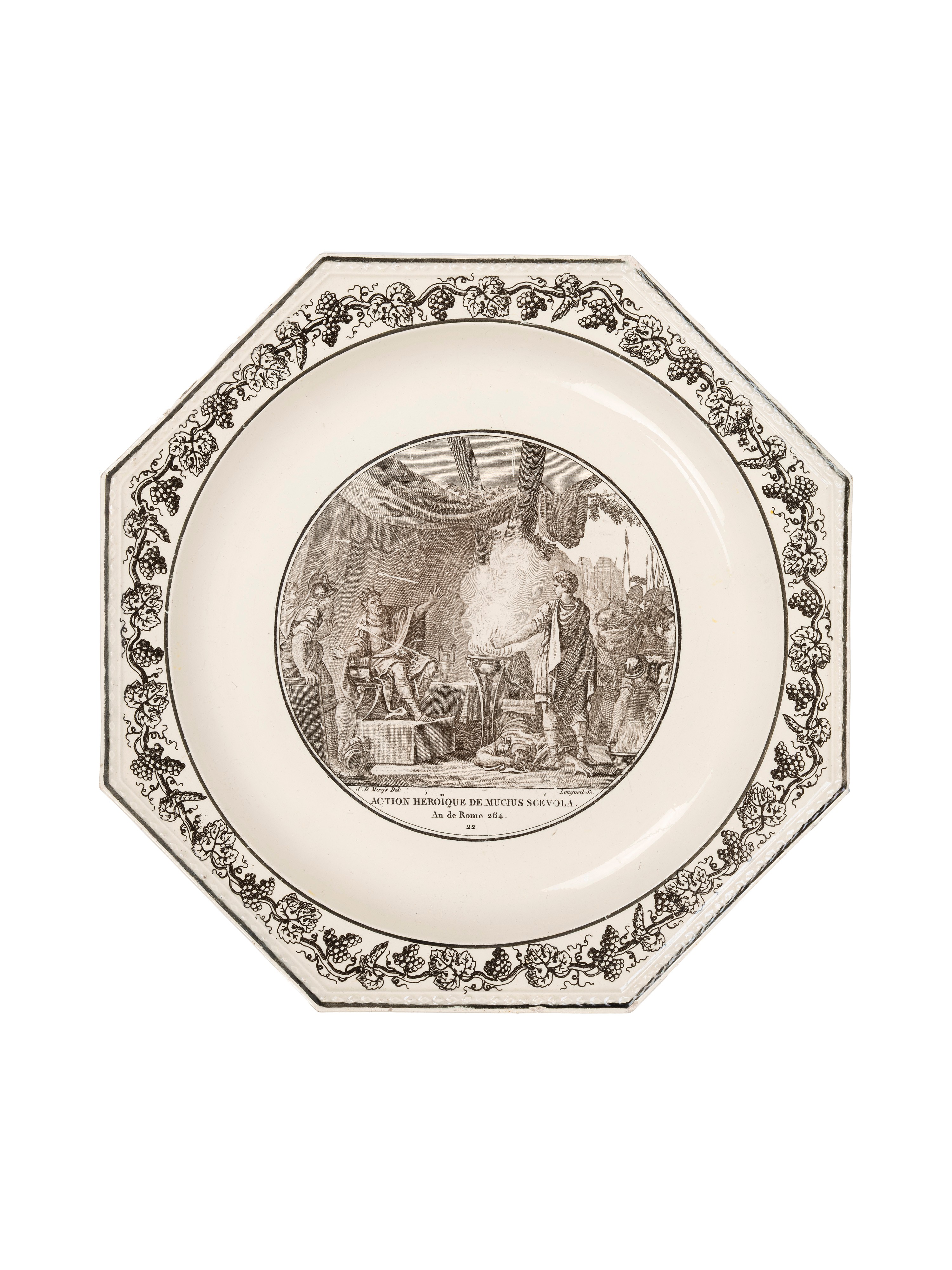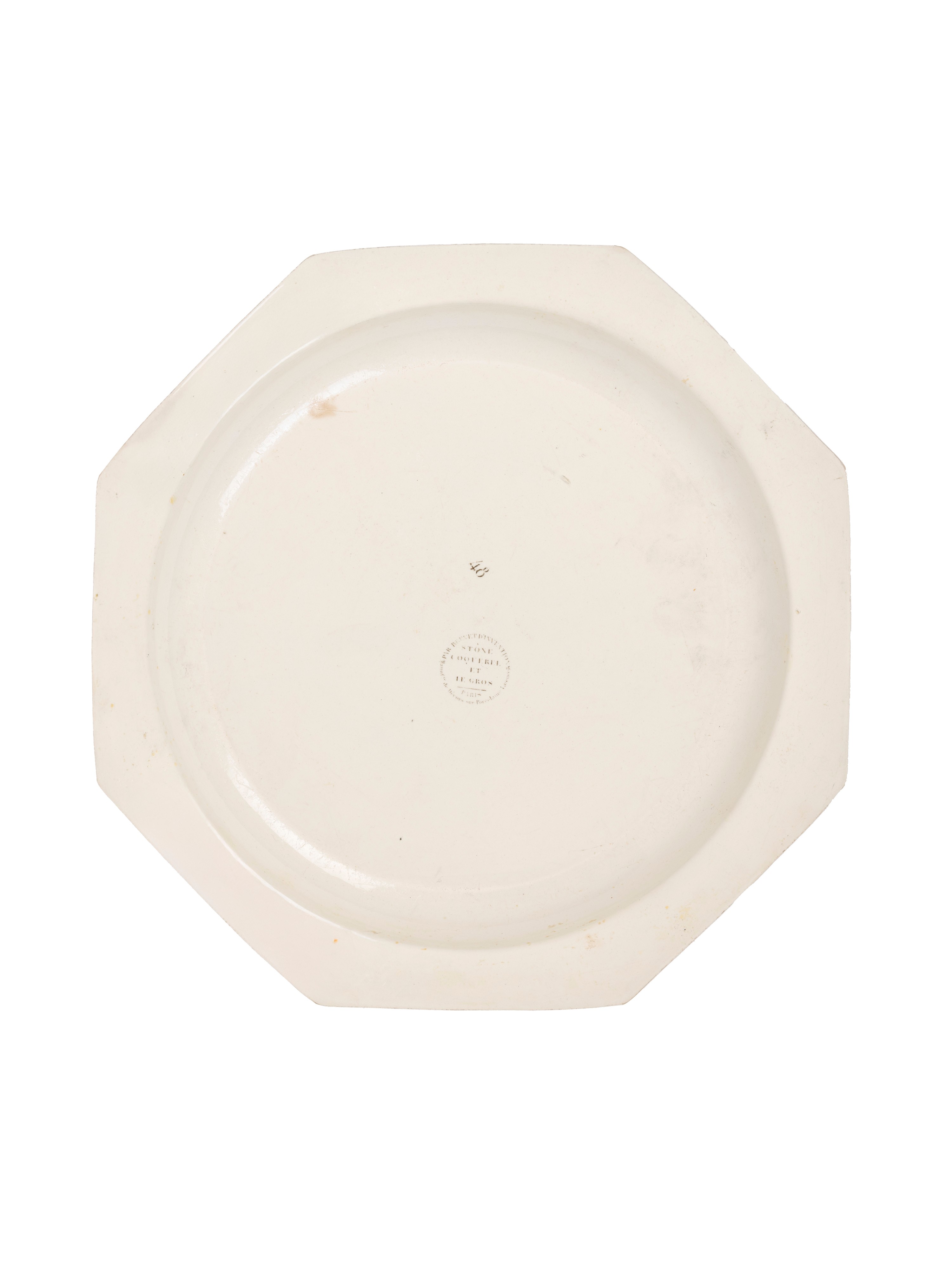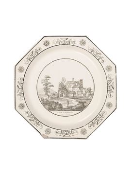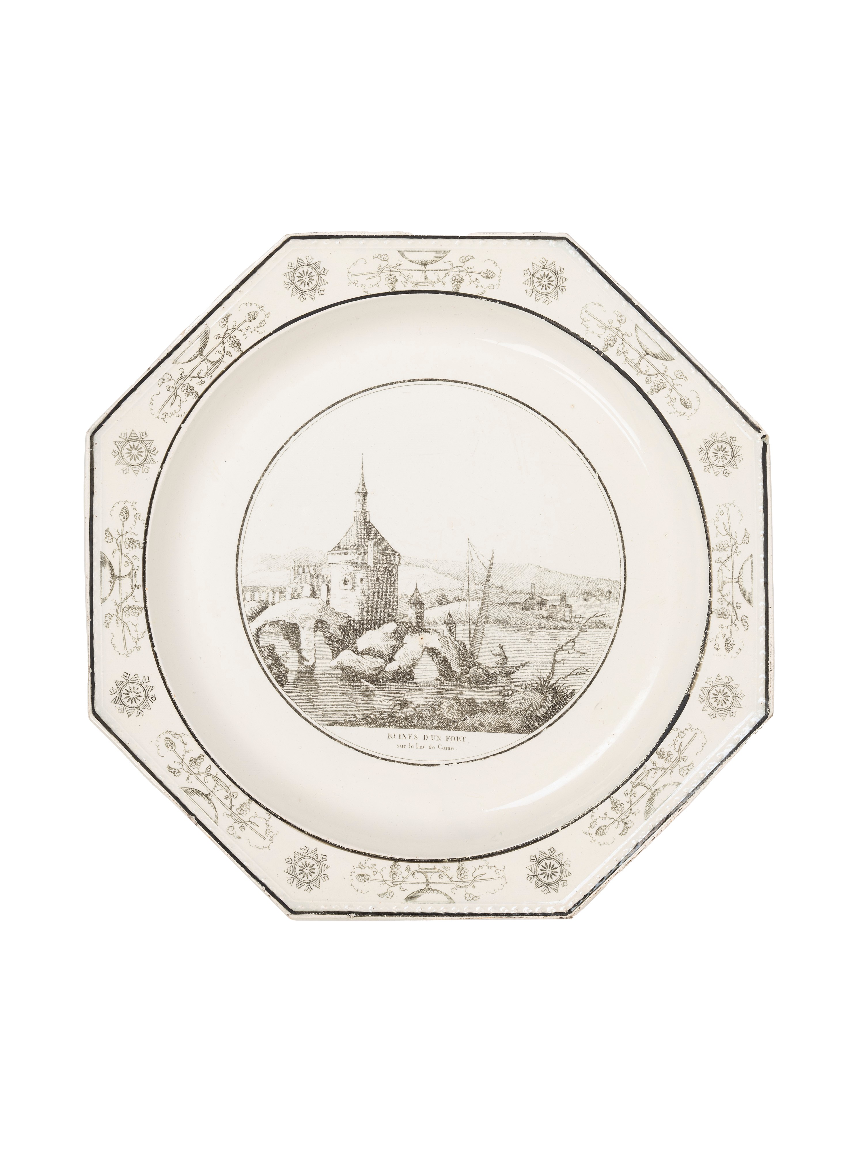 FIFTEEN MAIOLICA SAUCER PLATES WITH VIEWS AND ONE WITH A FLOWER, Montereau Faience, early 20th century