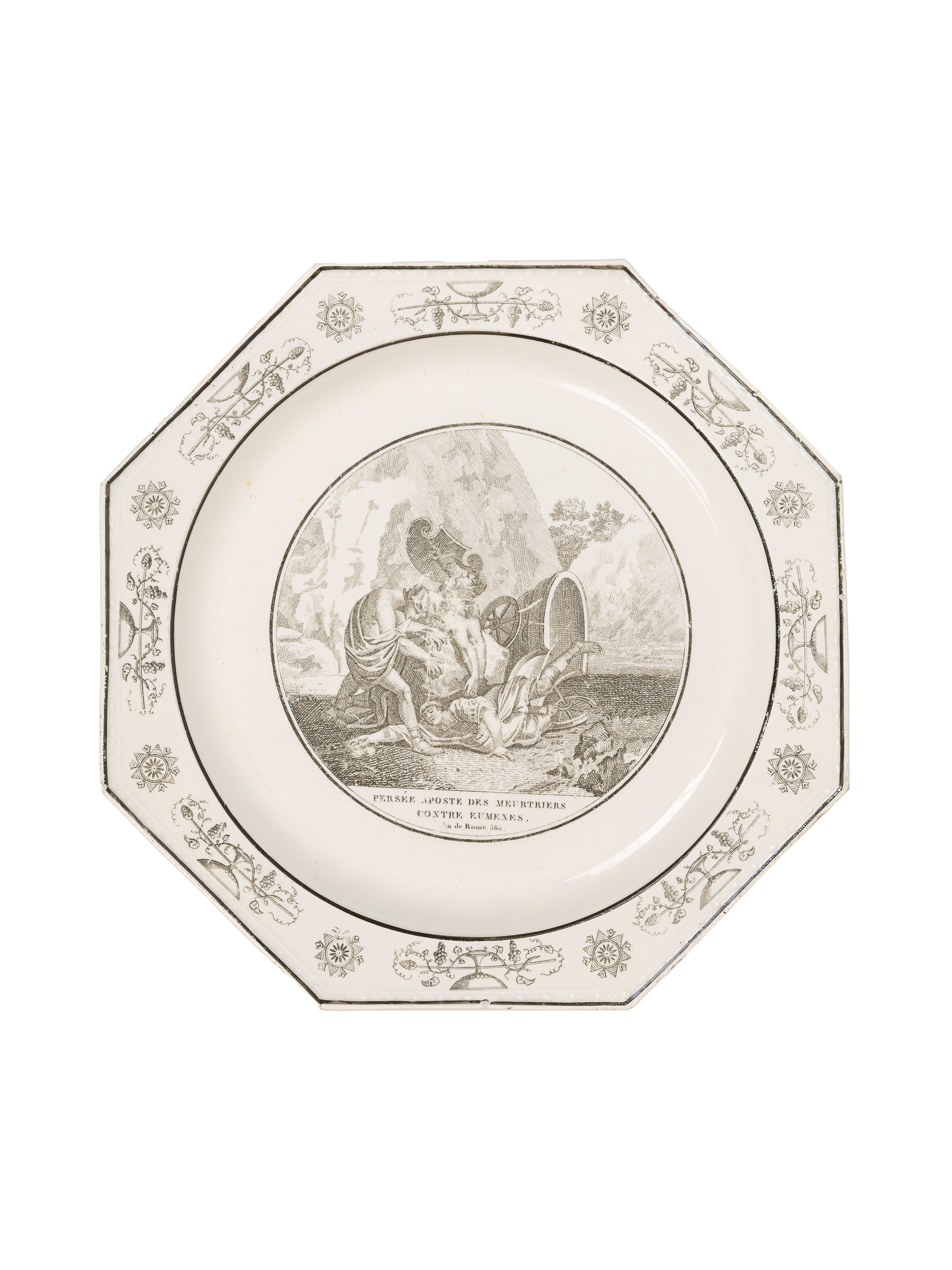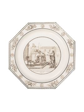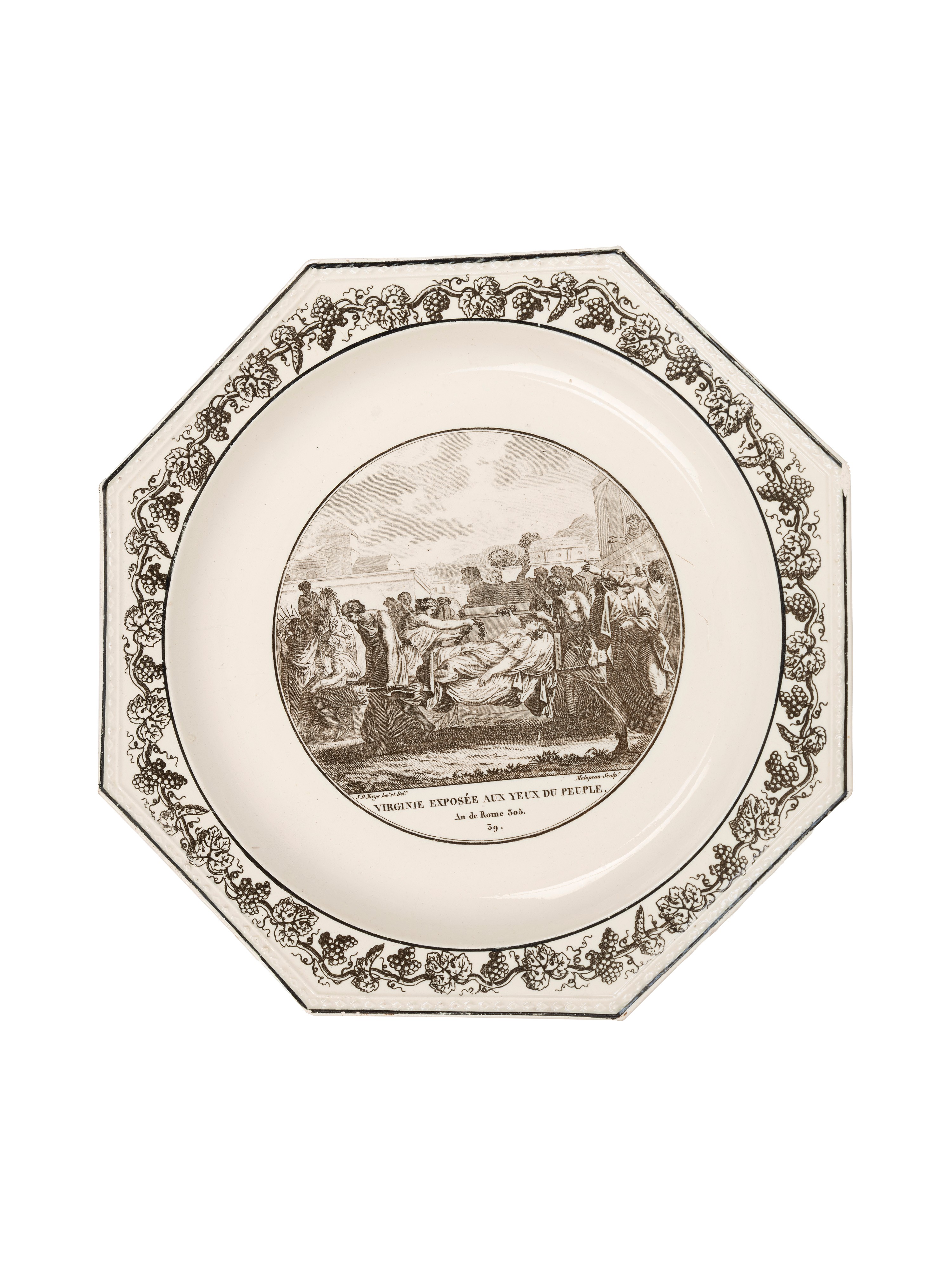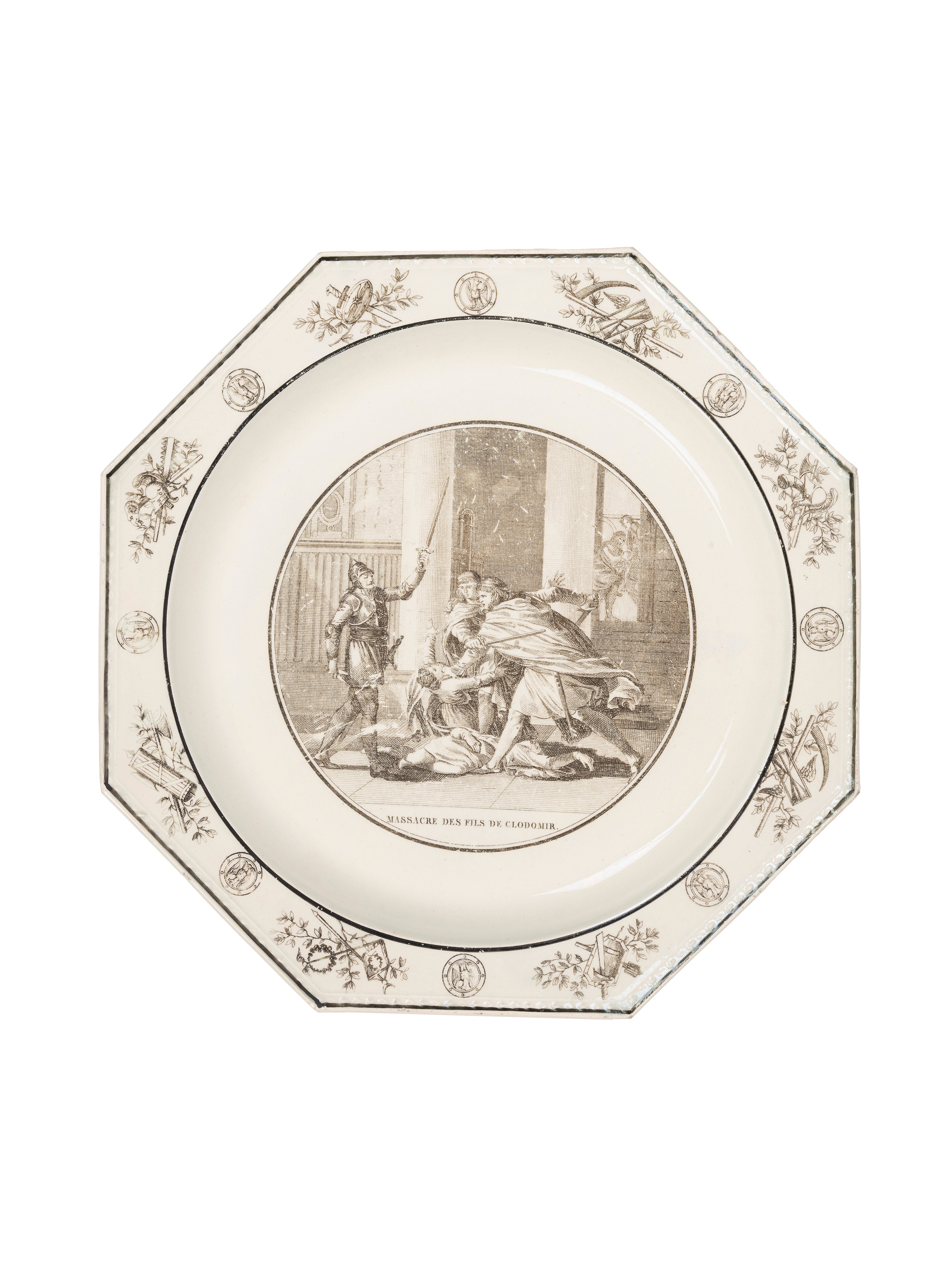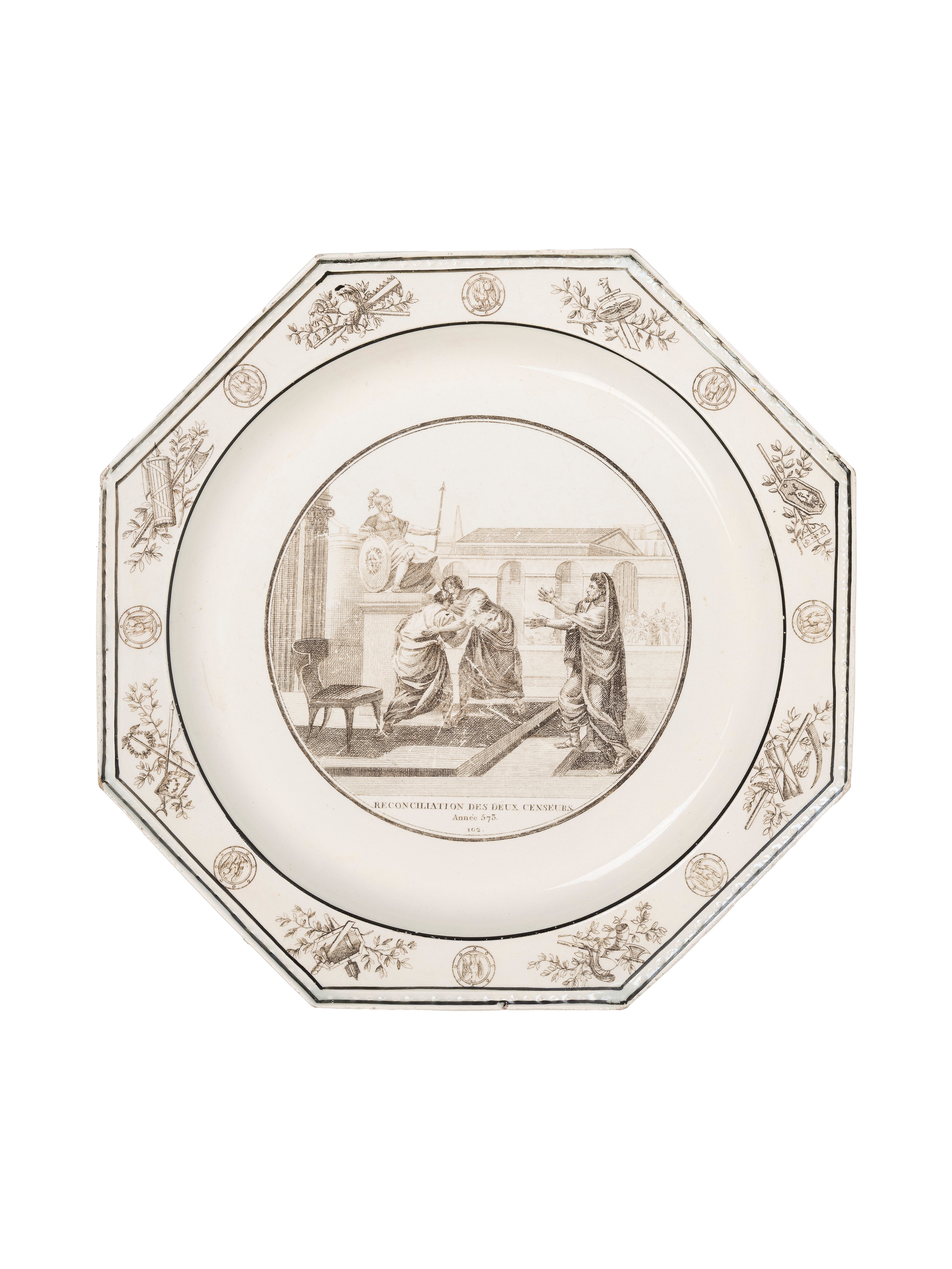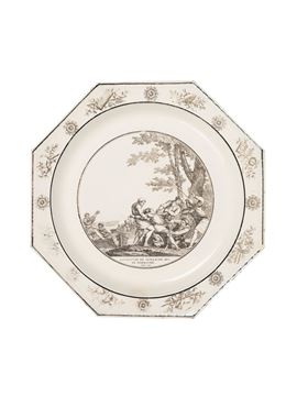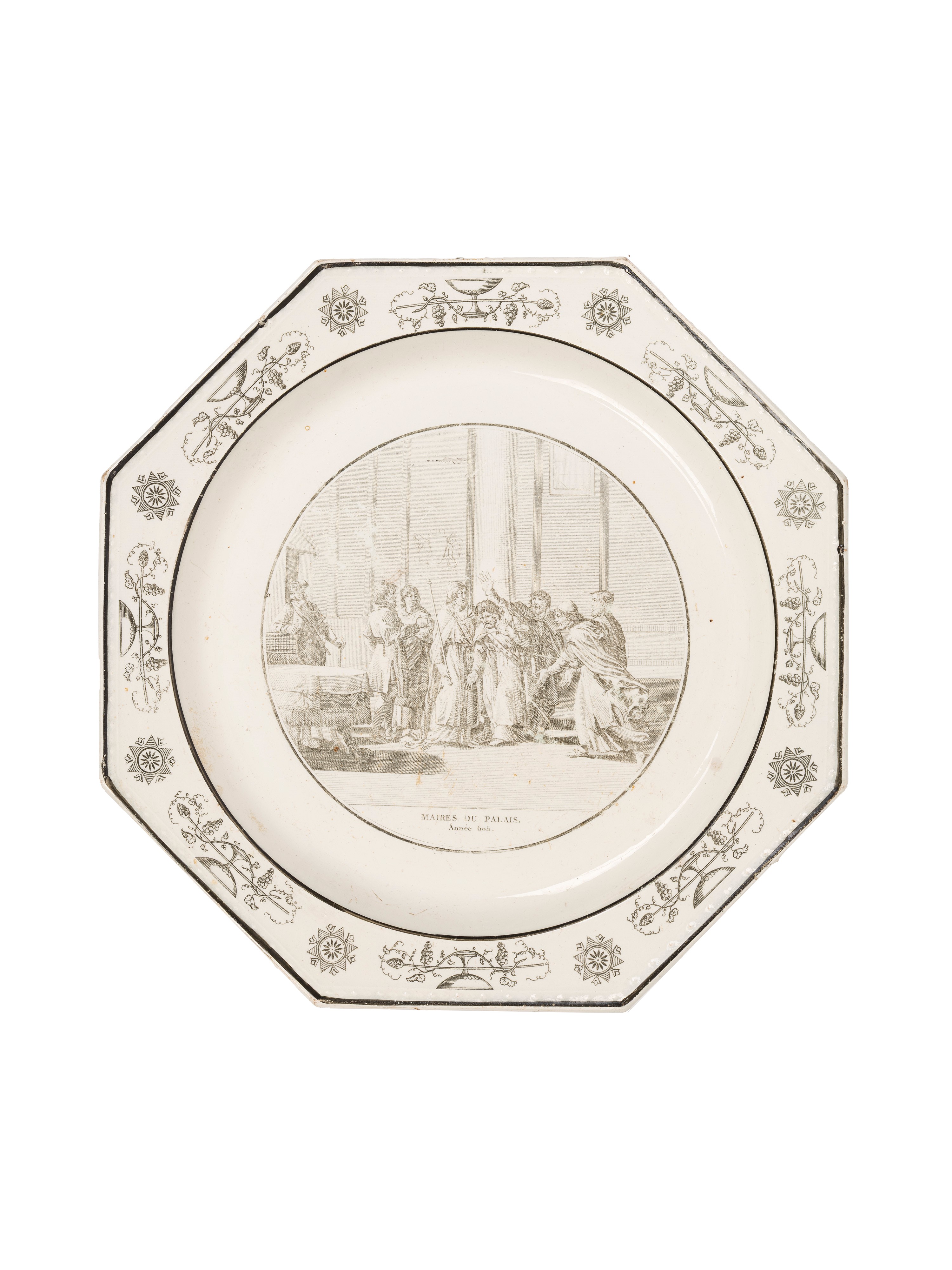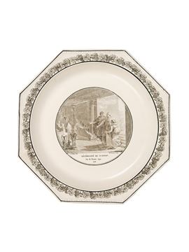 FIFTEEN MAIOLICA SAUCER PLATES WITH VIEWS AND ONE WITH A FLOWER, Montereau Faience, early 20th century