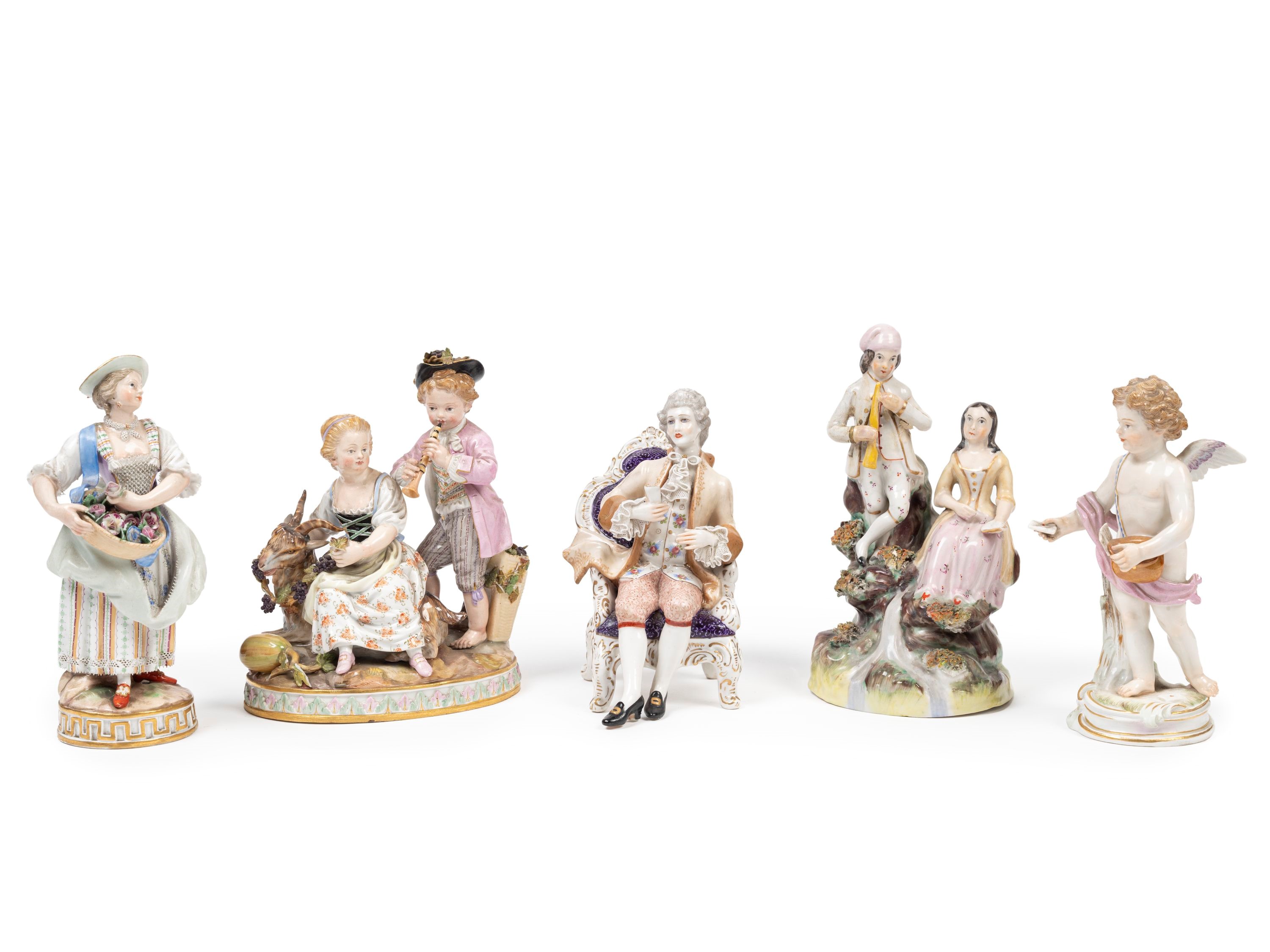 FIVE POLYCHROME PORCELAIN SCULPTURES, 19th century