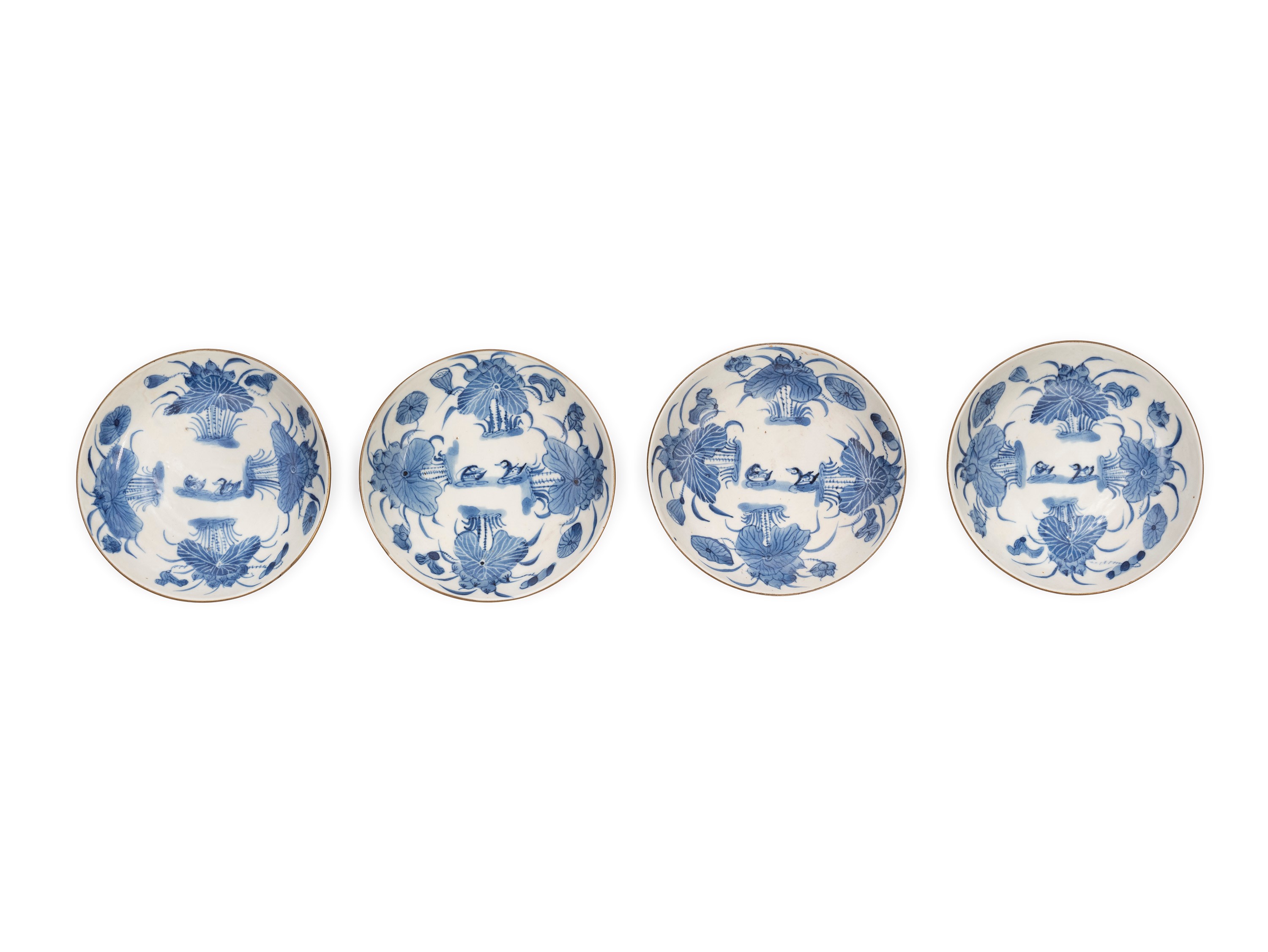 FOUR BLUE AND WHITE PORCELAIN PLATES, China, Qing dynasty, 19th century