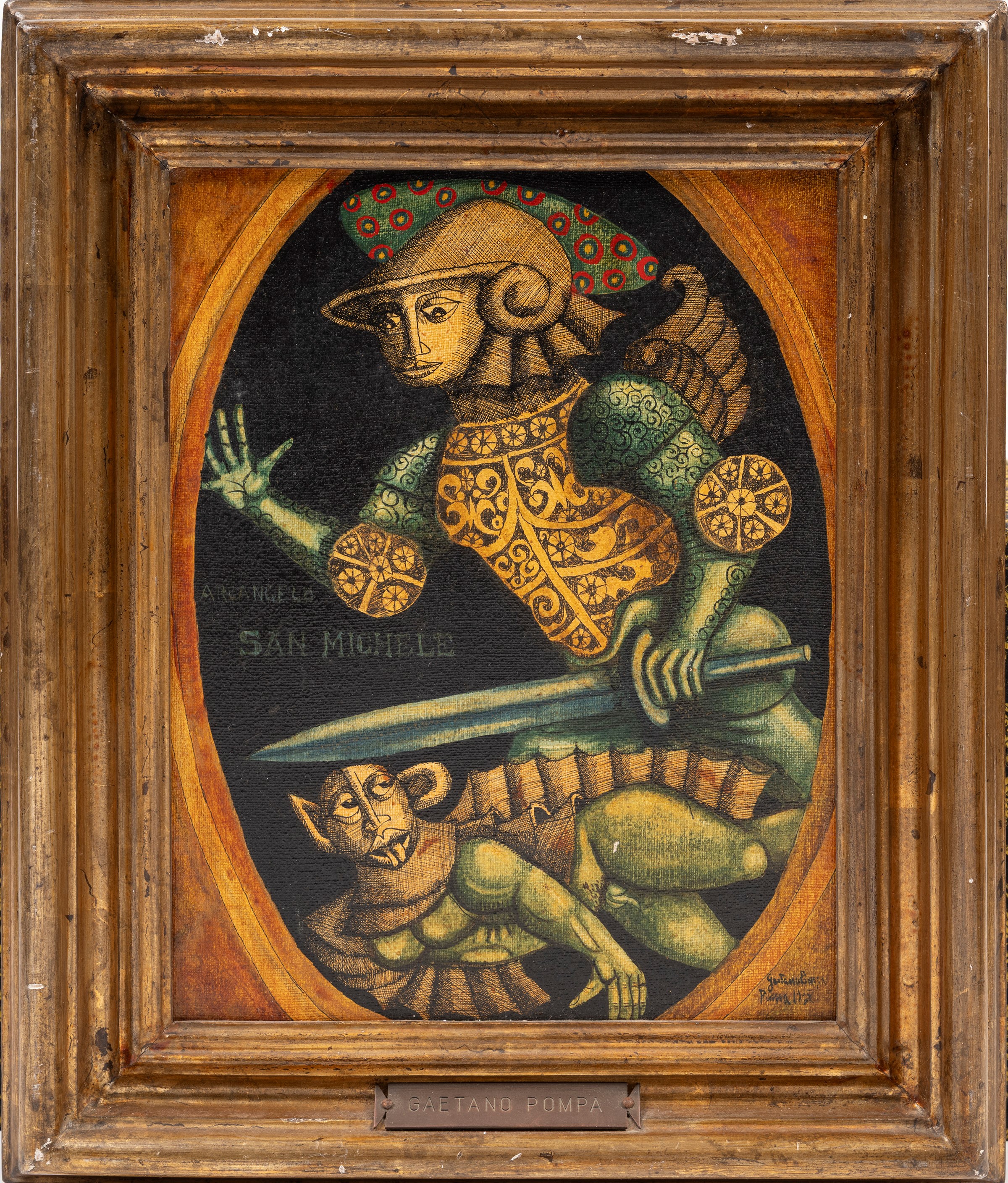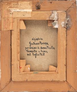 Signed Gaetano Pompa on the lower right and bears an inscription on the reverse: “Painted by Gaetano Pompa by order of Lady Ersilia Sampietro in Rome in 1968.”