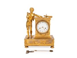GILT BRONZE CLOCK DEPICTING CUPID, Early 19th century