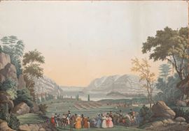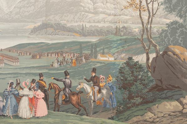 Titled “Military Review at West Point”, after a model by Jean-Julien Deltil (1791–1863) based on a print by J.G. Milbert.