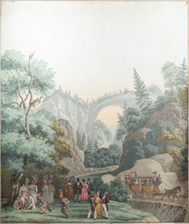 Imported into the United States in the nineteenth century, the Views of North America series was intended for a wide audience but became famous for its installation in the White House. Jacqueline Kennedy salvaged a set of panels from a Maryland residence slated for demolition and installed them in the Diplomatic Reception Room, where they remain today.