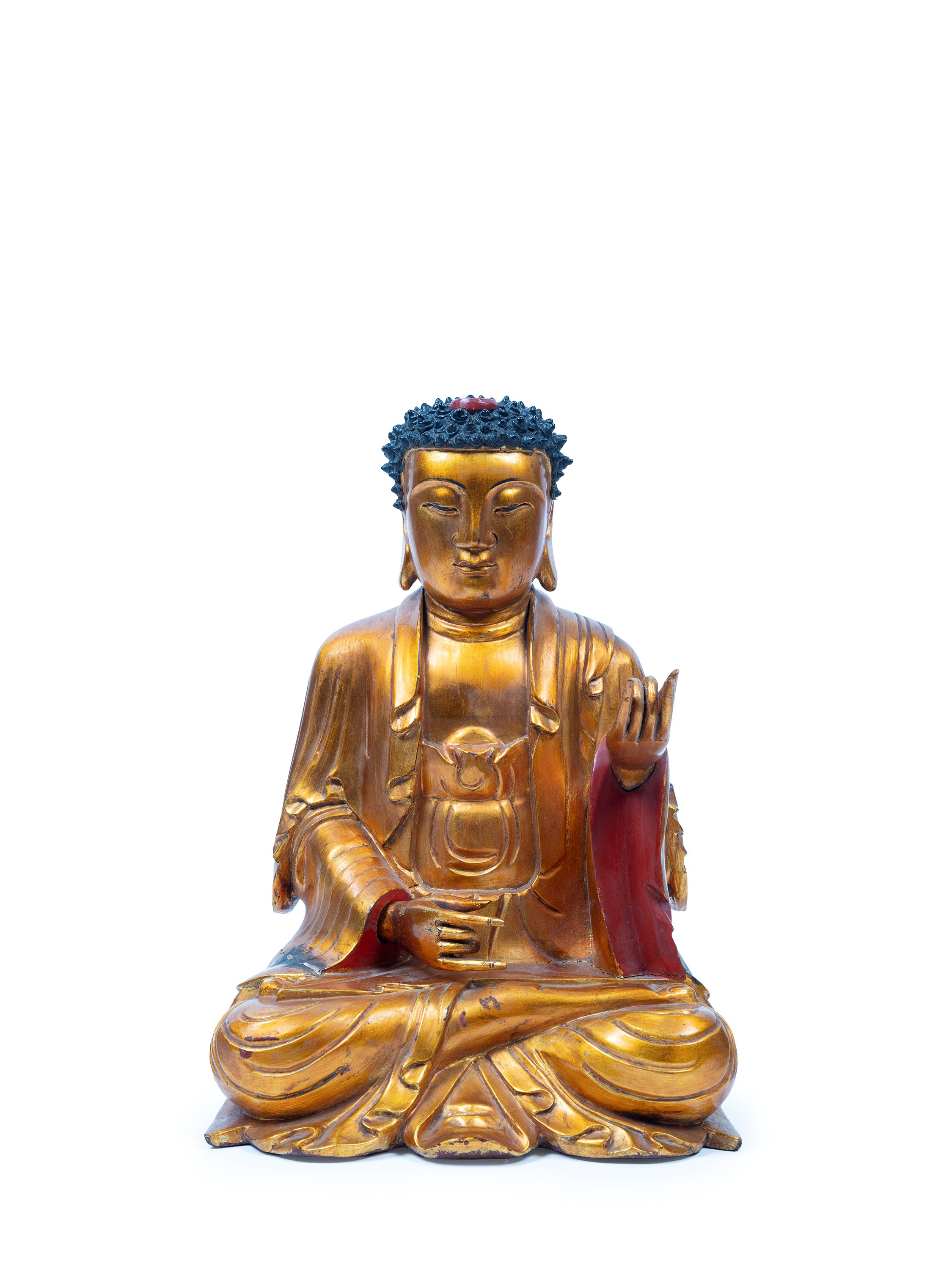 LACQUERED AND GILDED WOOD SCULPTURE DEPICTING A SEATED BUDDHA, China, early 20th century