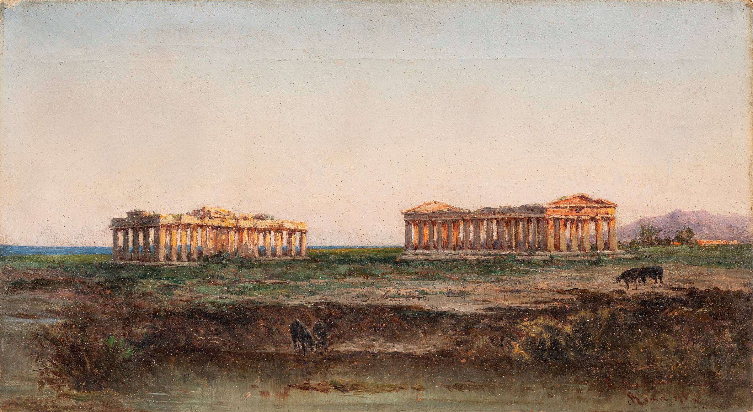 LANDSCAPE DEPICTING THE TEMPLES OF PAESTUM, Italian school, 19th century