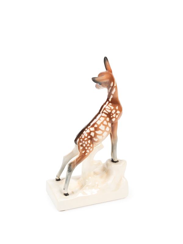 POLYCHROME EARTHENWARE SCULPTURE DEPICTING A FAWN, Turin, circa 1940