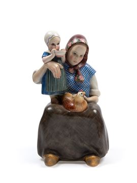 Polychrome earthenware sculpture depicting a girl with a doll, Turin, 20th century