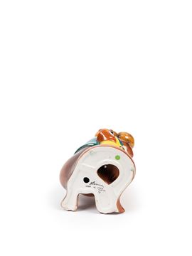 POLYCHROME EARTHENWARE SCULPTURE DEPICTING FISHING OTTER WITH JACKET AND SHOULDER STRAP, Turin, 20th century