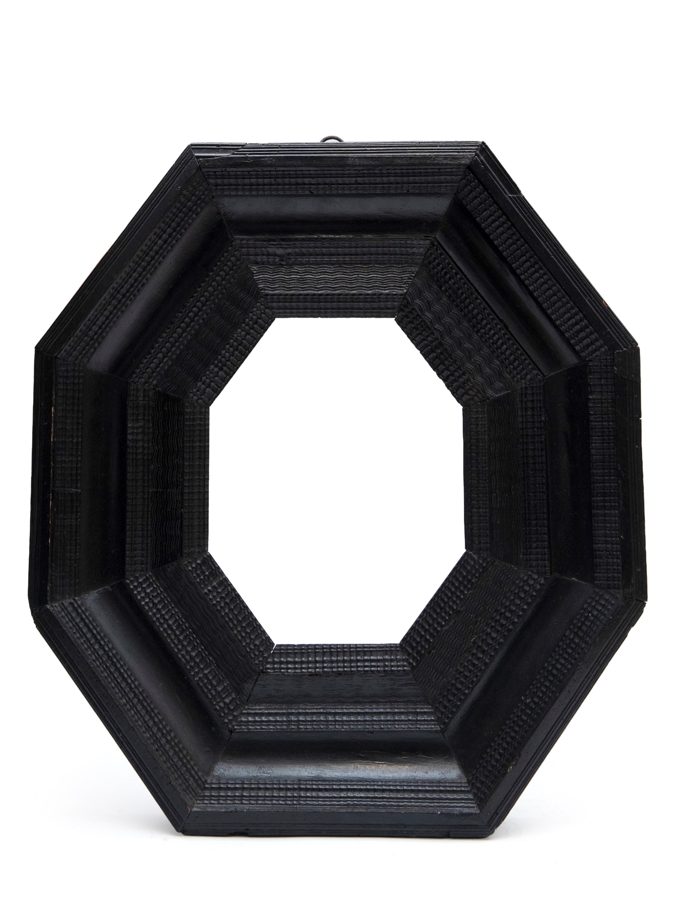 OCTAGONAL EBONIZED WOODEN FRAME WITH GUILLOCHE PATTERN, Central Europe, 17th century