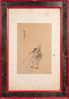 Depicting two figures with lotus and coins in hands, on the back of the painting depicting two Chinese Scholars.