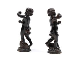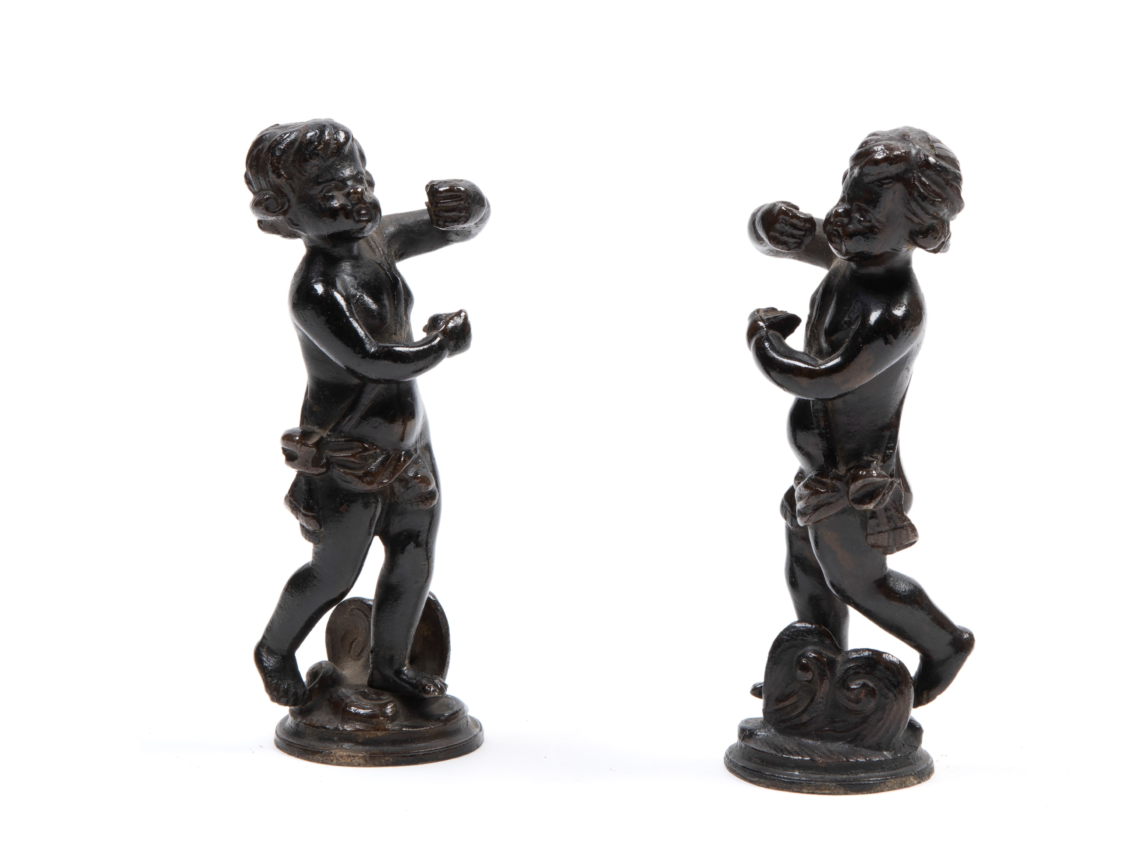 PAIR OF BRONZE PUTTI WITH DARK PATINA, 17th century
