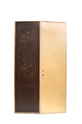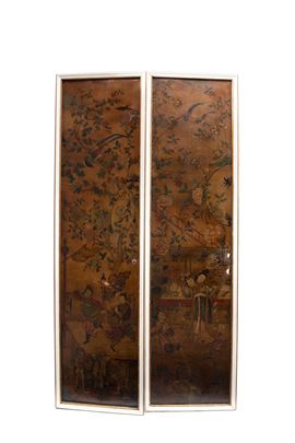 PAIR OF CHINOISERIE PAINTED LEATHER PANELS, 18th/19th century