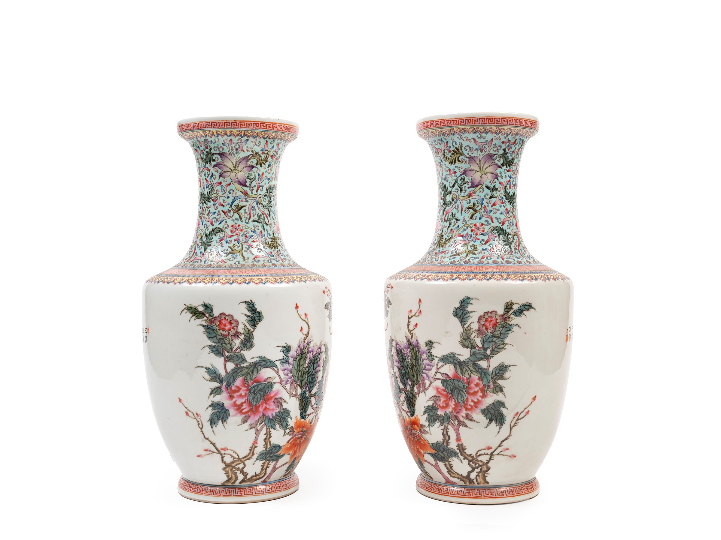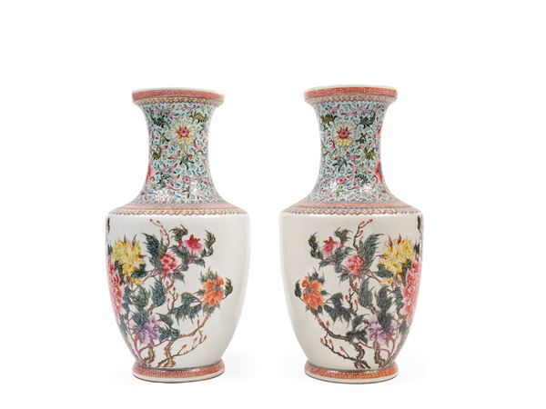 PAIR OF FAMILLE ROSE PORCELAIN VASES, China, 20th century