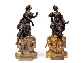 PAIR OF GILT AND PATINATED BRONZE ANDIRON FINIALS, 19th century