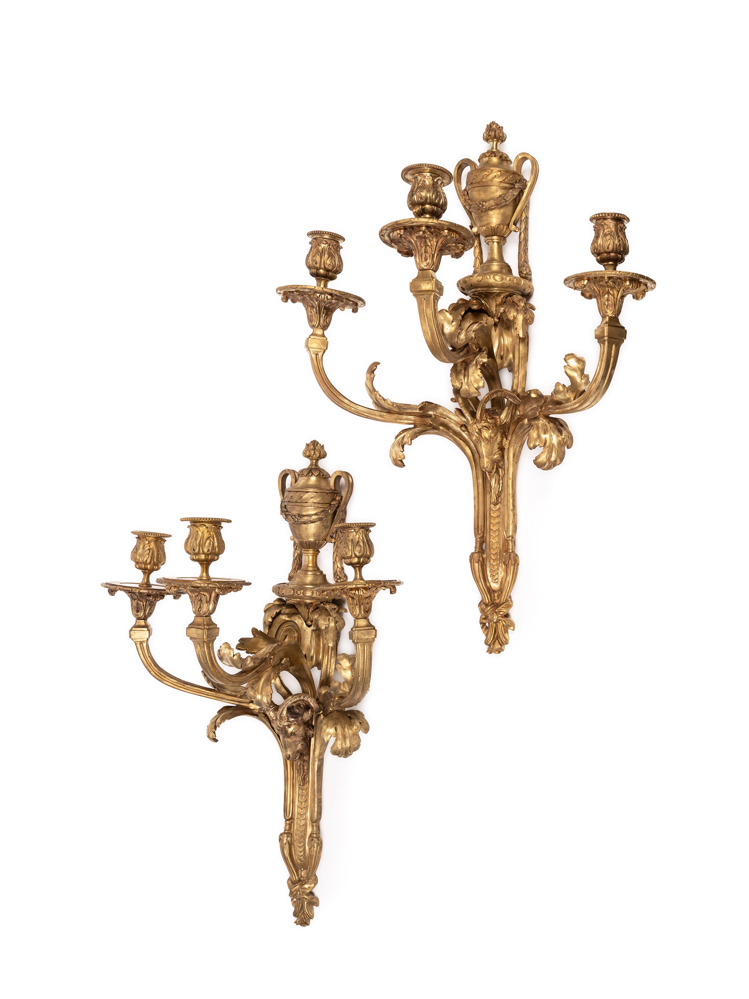 PAIR OF GILT BRONZE WALL SCONCES, Late 19th century