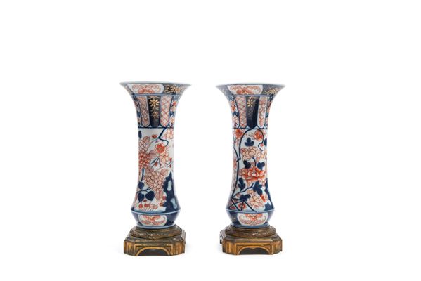 PAIR OF ORMOLU MOUNTED IMARI PORCELAIN VASES, Japan, Meiji Period (1868-1912)
