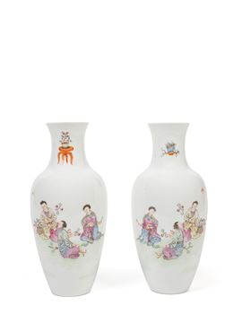 PAIR OF SMALL FAMILLE ROSE PORCELAIN VASES, China, 20th century