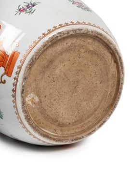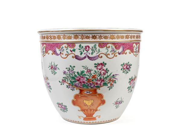POLYCHROME PORCELAIN CACHEPOT IN FAMILLE ROSE TONES, Samson manufactory, 19th century