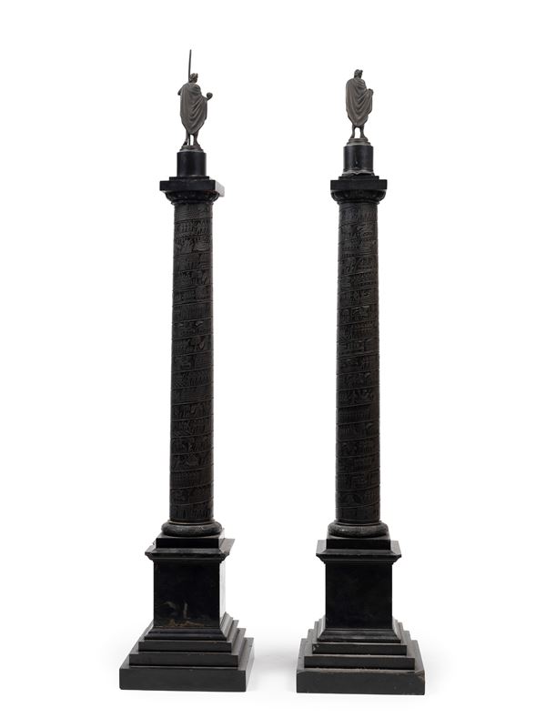 REDUCTIONS OF THE TRAJAN AND ANTONINE COLUMNS IN BELGIAN BLACK MARBLE, Rome, early 19th century