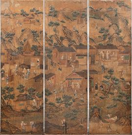 SEVENTEEN LARGE PANELS ON PAPER, China, Qing dynasty, 18th century