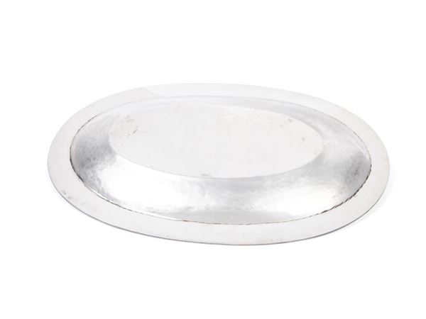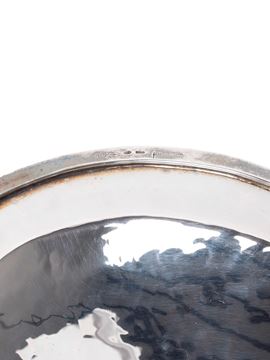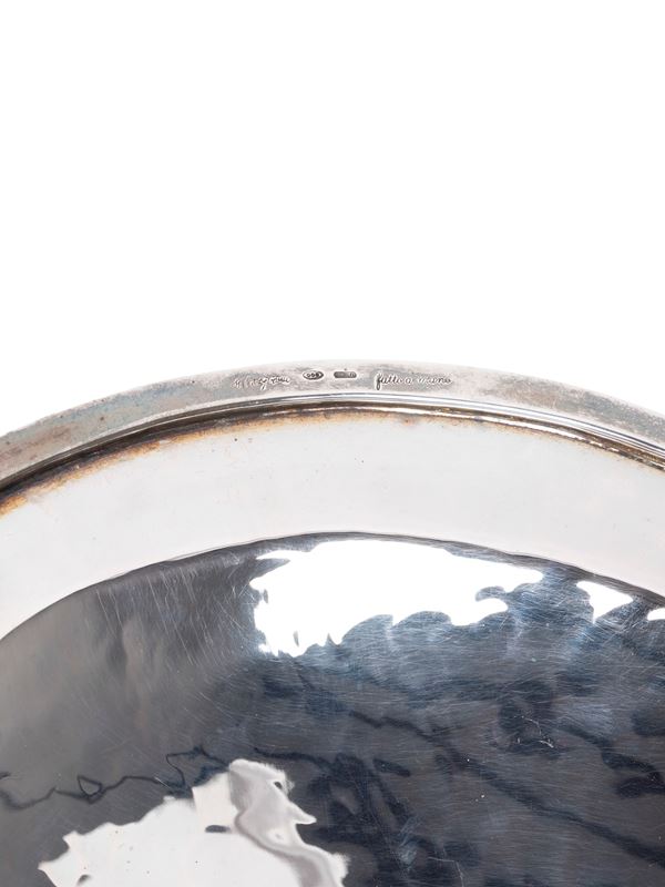 Decorated at the center with a still life of fish, a lobster, and a starfish. On the rim, 800 mark and signature. Weight 3,161 g.