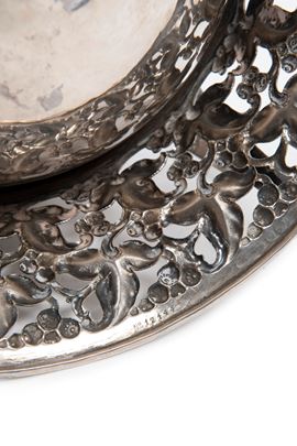 Pierced work with floral and vegetal motifs. Marked on the lower rim: Germany; signed Sauerwein; serial number 12144. Weight g 715.