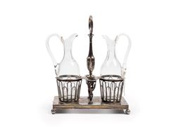 SILVER CRUET SET WITH CRYSTAL BOTTLES, France, 19th century