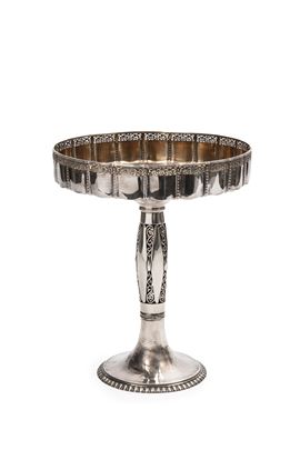 Pierced work with volute motifs. Marked under the base: Germany. Signed J. C. Wich, Nuremberg; serial number 11071/12. Weight g 375.