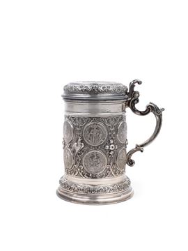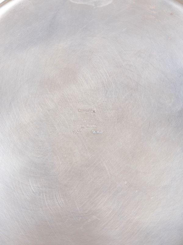 Decorated with antique-style medallions, floral motifs, and birds. Under the base, marked 800 and signed COPPOLA. Weight g 1,484.