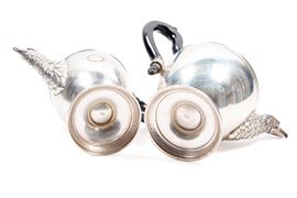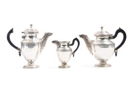 800 hallmark. Handles in black ebonized wood; eagle-shaped spout, pinecone finial. Total weight g 630.