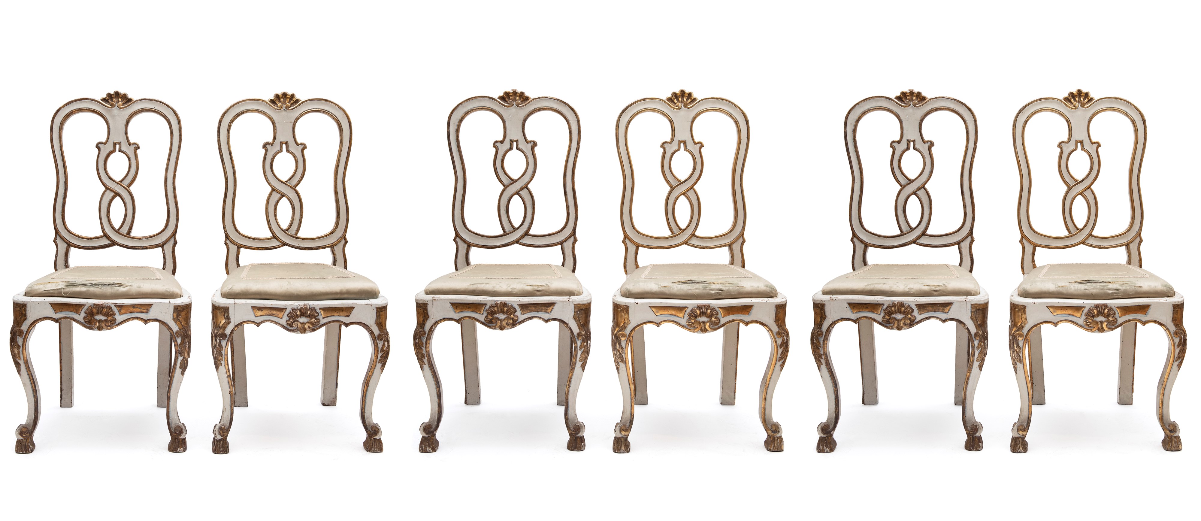 SIX LACQUERED AND GILDED WOODEN CHAIRS, Venice, 18th century