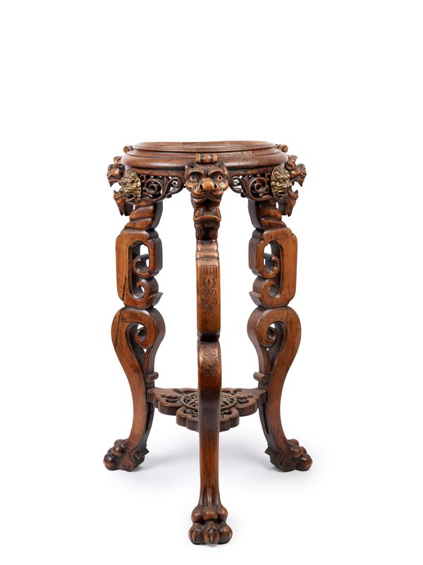 TRIPOD BASE IN CARVED WOOD, Early 20th century