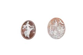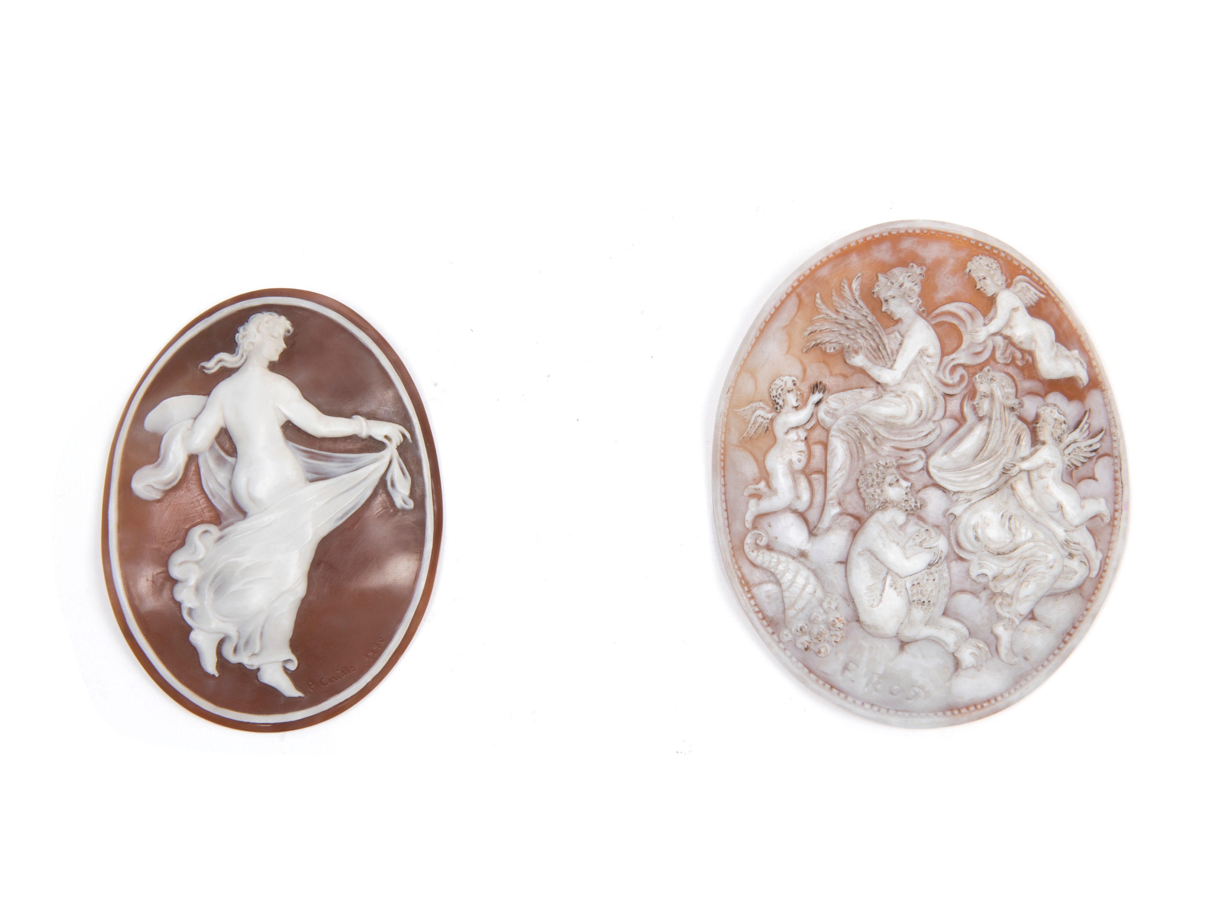 One depicting an allegorical scene, signed F. Ros; the other Dancing Odalisque, signed P. Cirillo 1990.