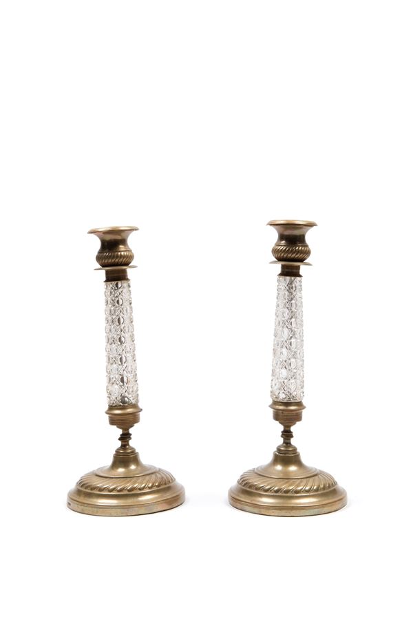 TWO CUT GLASS AND BRASS CANDLESTICKS, Russia, 19th century